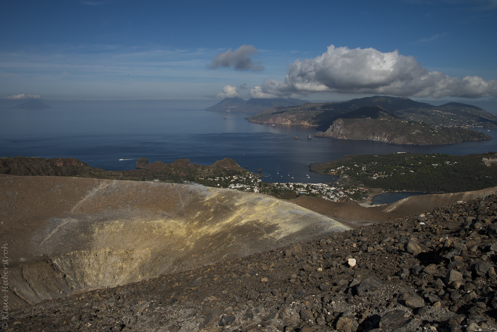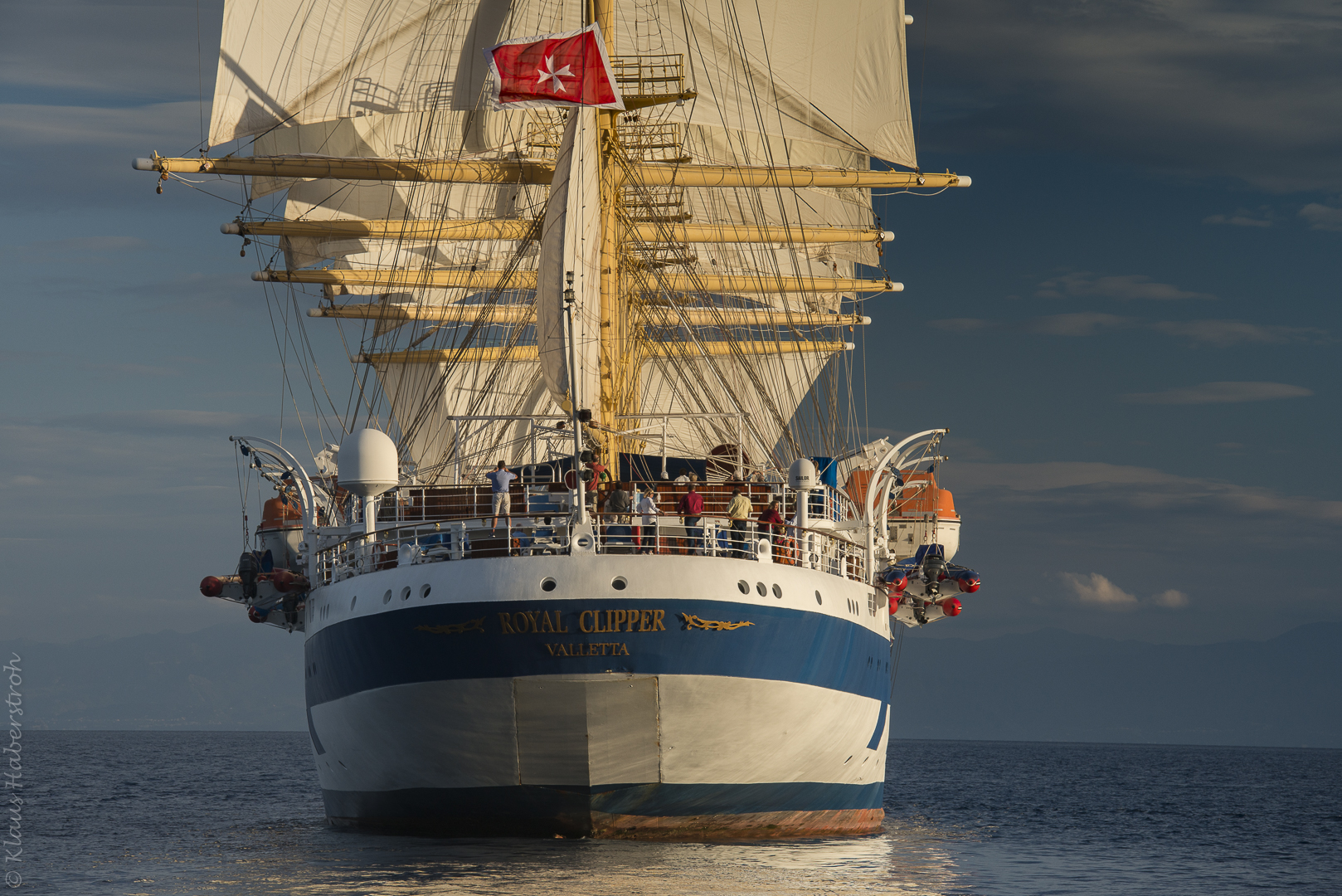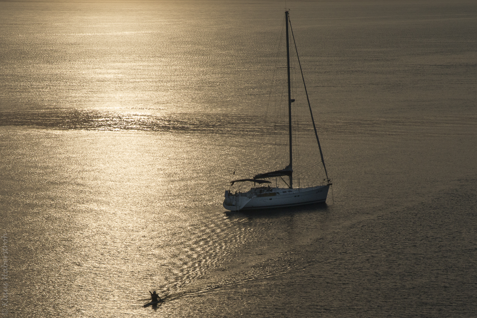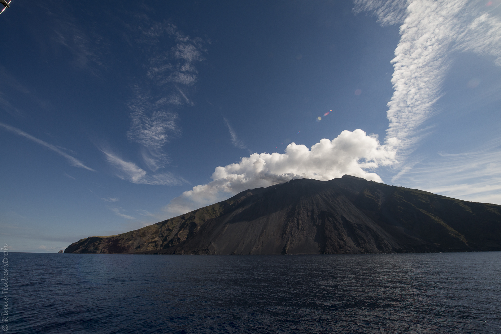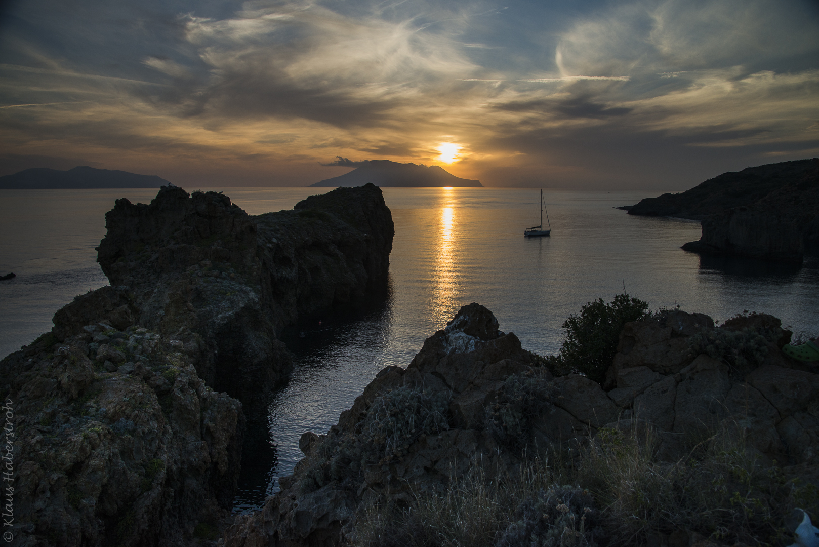 In Sizilien ist es im Oktober noch sommerlich und das Wasser ist noch warm zum Baden. Ein ideales Segelrevier um den Sommer zu verlängern. Vor der Nordküste liegen die Äolischen Inseln oder auch Liparische Inseln genannt. Diese 7 Inseln sind alle vulkanischem Ursprungs und zwei von Ihnen, der Stromboli und Vulcano sind noch aktiv. Es ist Segelrevier mit kurzen Wegen und unvergleichlichen und spannenden Naturschauplätzen. Nachteilig sind die steilen Flanken der Vulkane die sich unter dem Wasser fortsetzen und kaum Ankermöglichkeiten bieten. Aber im Oktober ist nicht mehr viel los, so dass jeder ein Ankerplätzchen findet. Ein Highlight war der 5-Master auf Lipari beim Segel setzten im Abendlicht.