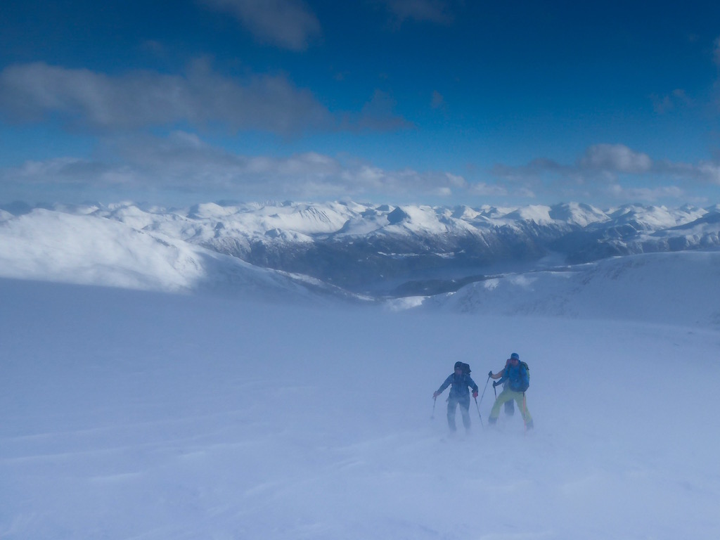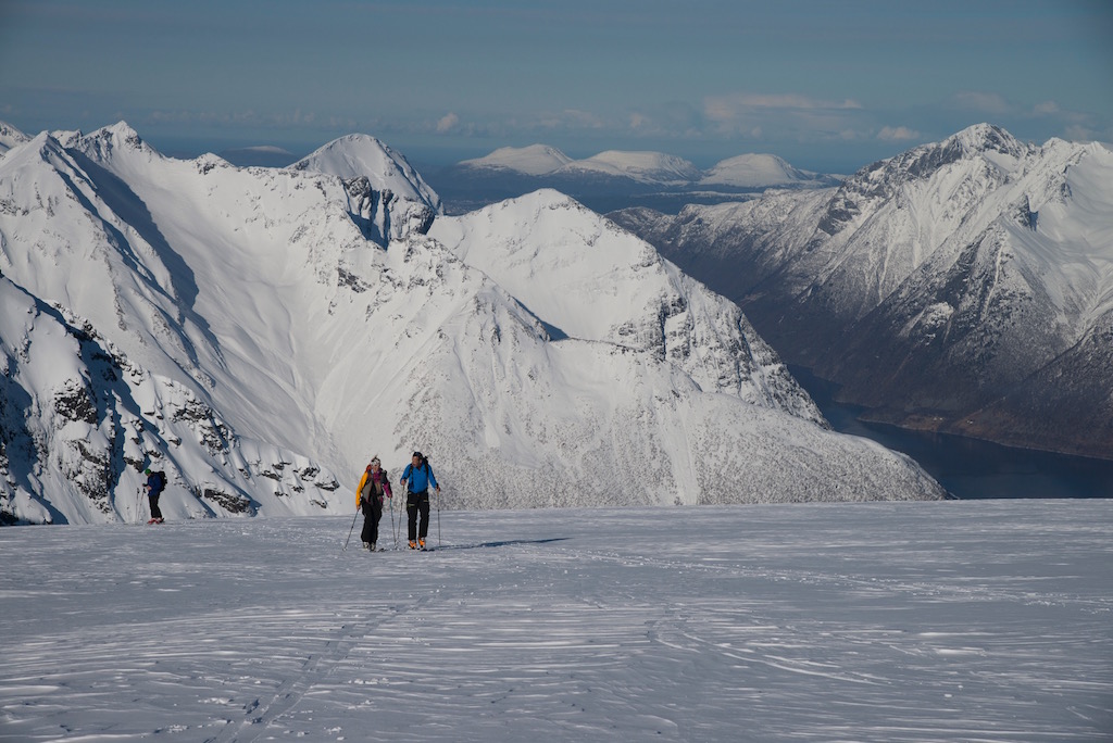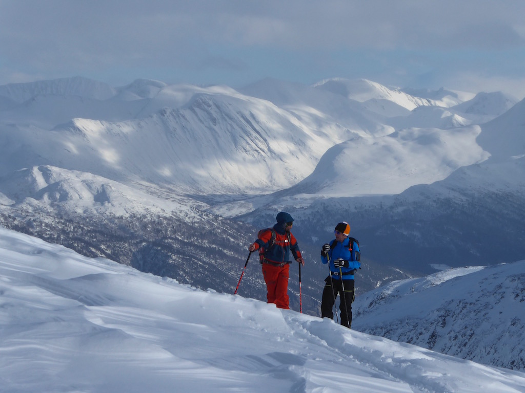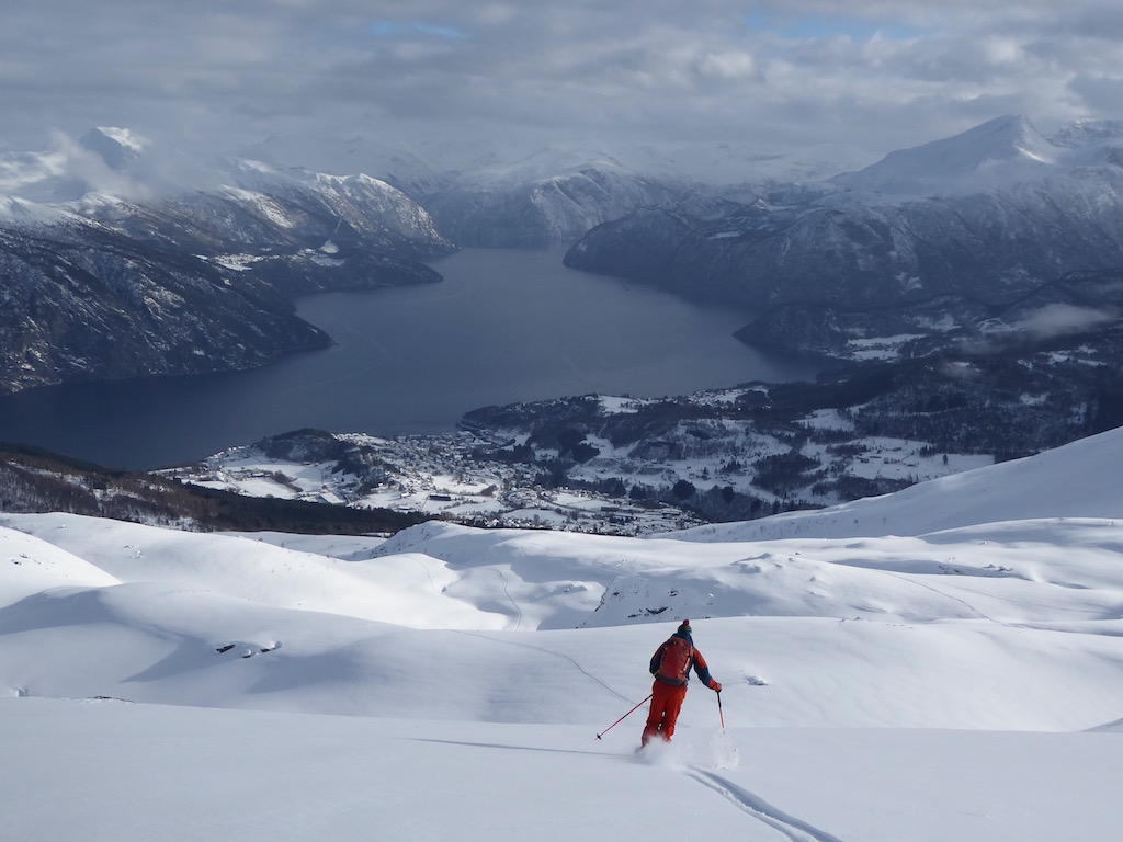 Skifahren über den Fjorden ist ein ganz besonderes Erlebnis. Der Ort Strand liegt in den Sunmore Alps in Mittelnorwegen bei Alesund. Wir sind total begeistert von diesem wunderschönes Gebirge mit seinen bizarren Bergen mitten in der Fjordlandschaft. In einer luxuriösen Selbstversorgerhütte mit Sauna und einem Whirlpool im Freien lassen wir es uns gut gehen.