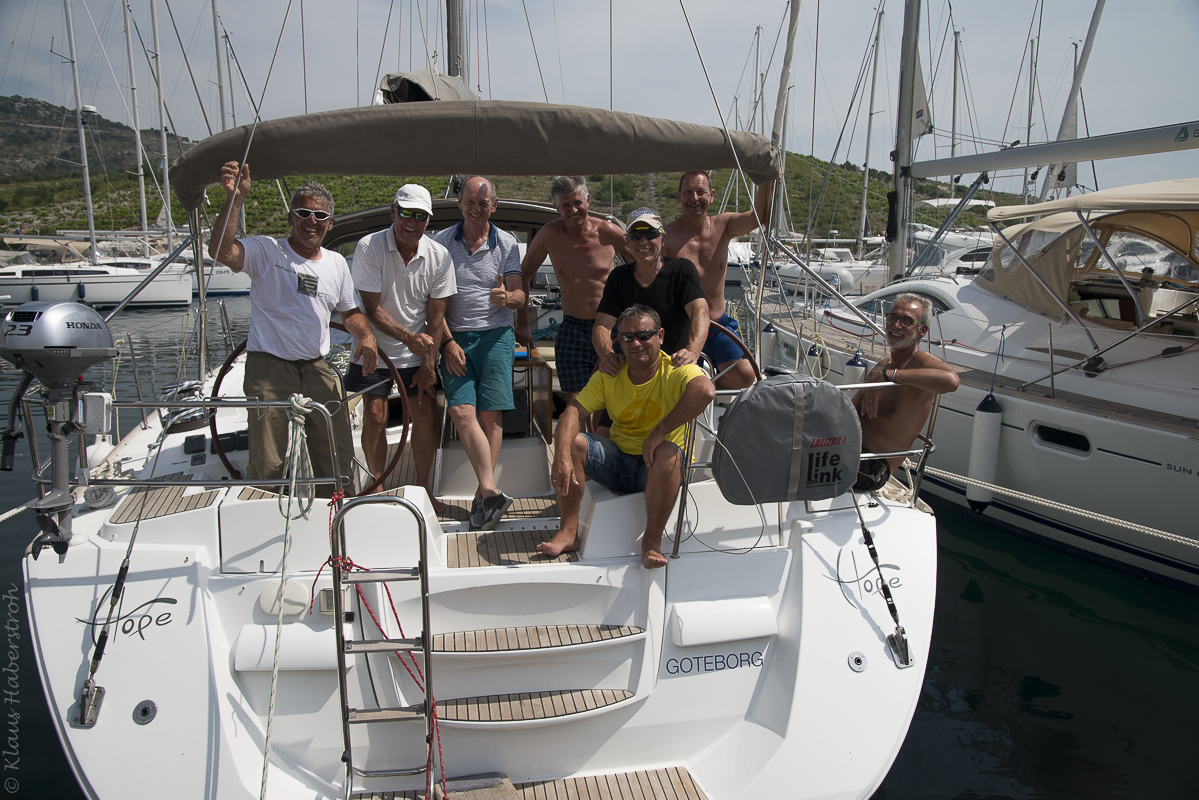 Von Primosten mit 8 Männer auf einer Jeanneau 53 namens “Hope” durch die Kornaten. Ein super Boot und perfekt gepflegt von der Charterfirma Chilla Sailing.