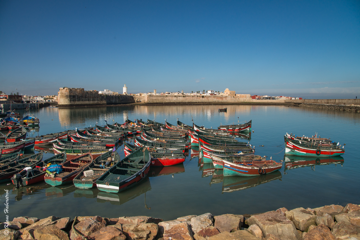 Auf unserer Rundreise mit einem kleinen Mietwagen sind wir in der Touristenhochburg Marrakech gestartet. Über den hohen Atlas erreichten wir das Tal der Kashbas und besichtigten die Mit Ben Haddon Kashba, die in Filmen wie Ben Hur oder Games of Thrones als Kulisse diente. Nach einem Stop in der Todgha Schlucht erreichten wir Merzouga, das Tor zur Erg Chebbi Wüste. Die Wüste zu sehen ist ein lang ersehnter Wunsch. 3 Tage verbrachten wir mit dem Kameljungen Hamou und zwei Kamelen in den Sanddünen und der dahinter liegende Steinwüste. Hamou ist dort aufgewachsen und der Besuch bei seiner Mutter war ein ganz besonderes Erlebnis. Nach der Wüste standen die Königsstadt Meknes, die blaue Stadt Chefchouen im Rif Gebirge und Fes auf dem Programm. In Fes bekamen wir überraschend Besuch von unseren Töchtern . Nach Fes folgten die Küstenstädte Rabat, El Jadida und Essaouira. Zum Schluss hatten wir noch einen Tag Zeit in das Bergsteigerdorf Imlil zu fahren. Imlil ist der Ausgangsort für die Besteigung des höchsten Berges Nordafrikas, den Toubkal mit 4167m. Da ich diesen Berg im Winter mit Skiern besteigen möchte, sammelte ich wichtige Informationen und knüpfte Kontakte mit lokalen Guides. Zum Abschluss ließen wir diese super interessante Reise in Marrakesch ausklingen. Viel Spaß mit den Bildern.