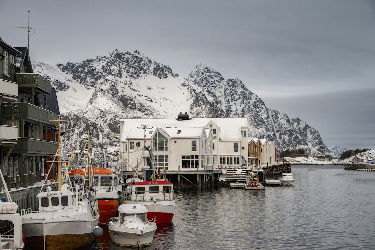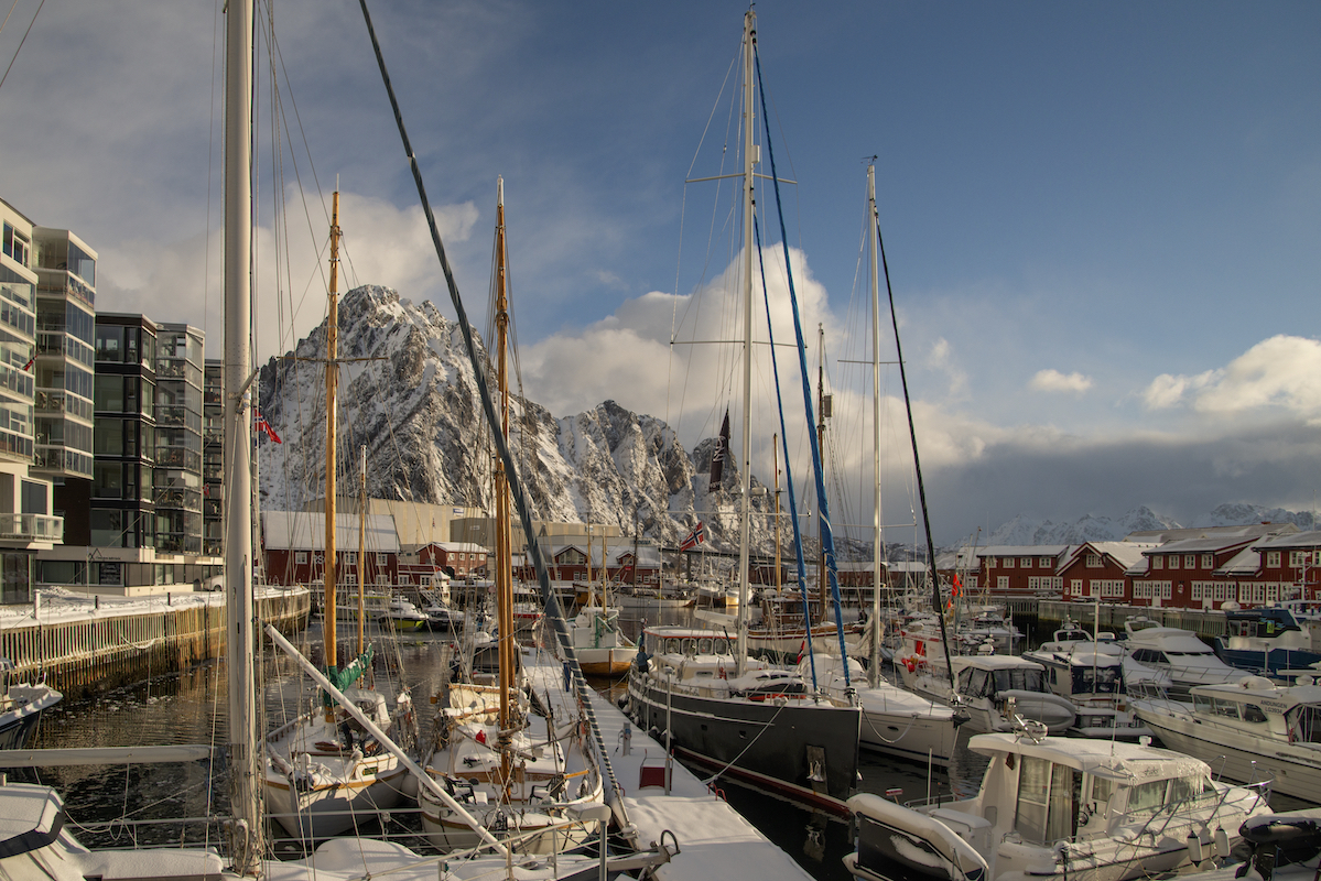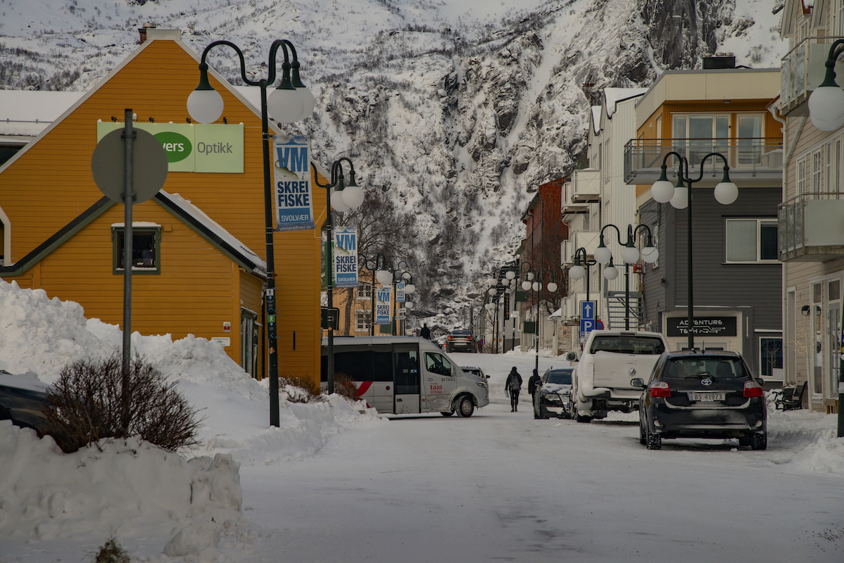 Unser Stützpunkt war die Hafenstadt Svolvaer, die regelmäßig von den Schiffen der Hurtigrouten besucht wird. Dadurch ist der Ort touristisch sehr gut erschlossen mit vielen Bars für den Apres Ski und sehr guten Restaurants mit allem was das Meer zu bieten hat.