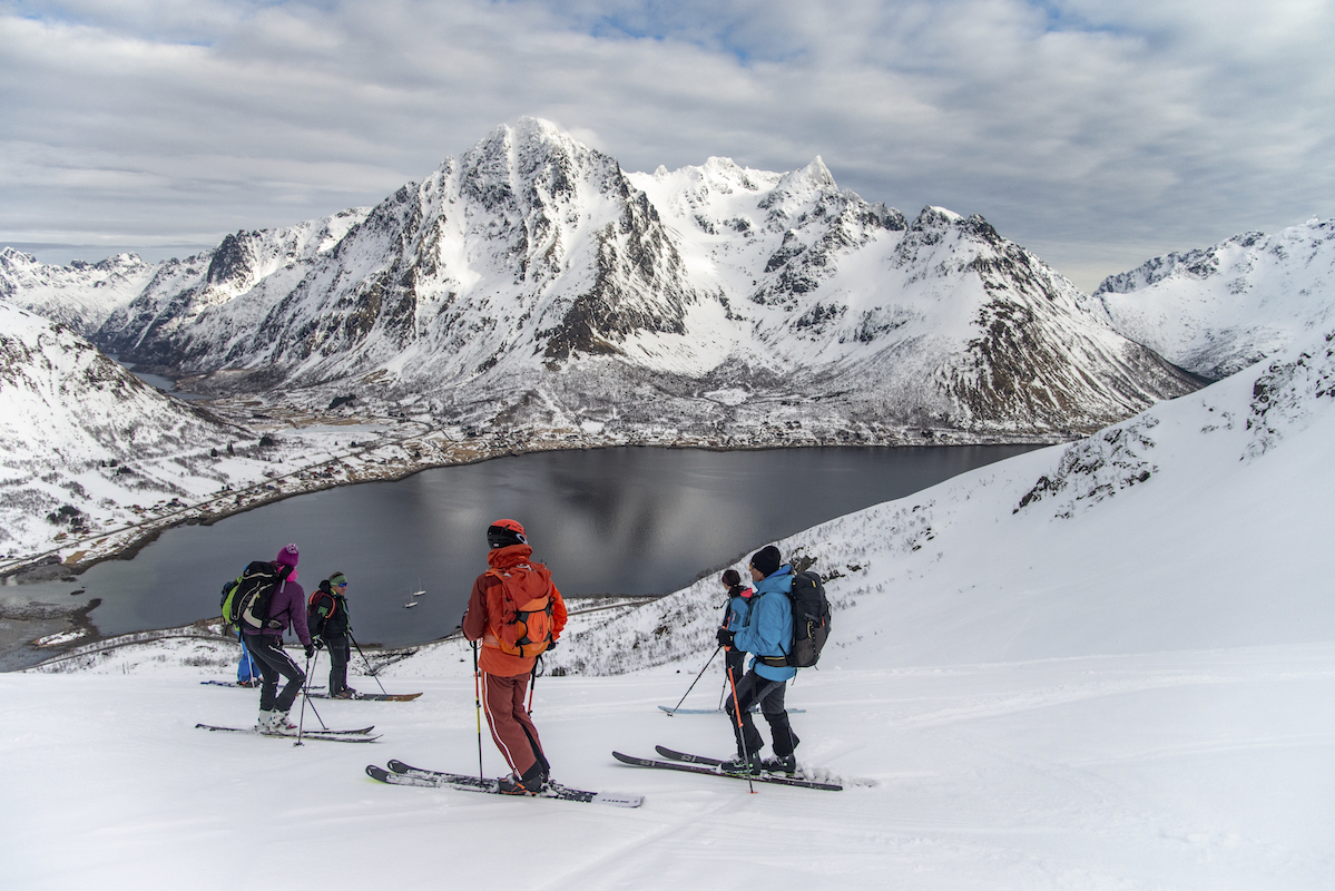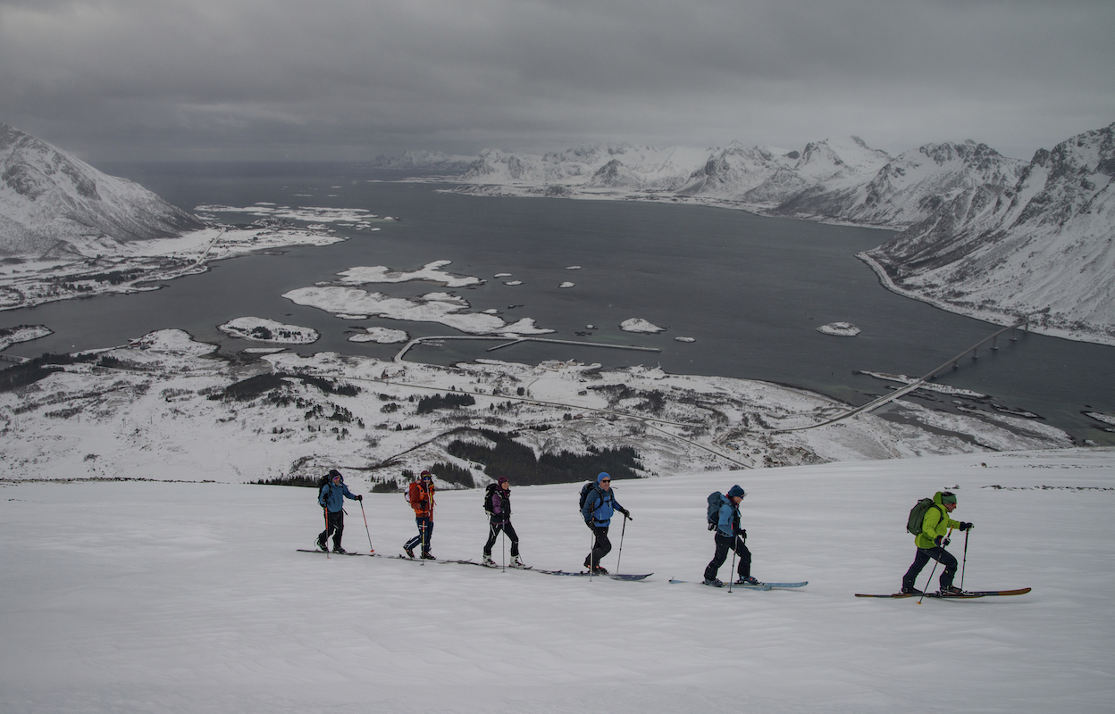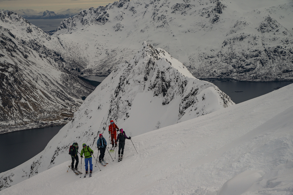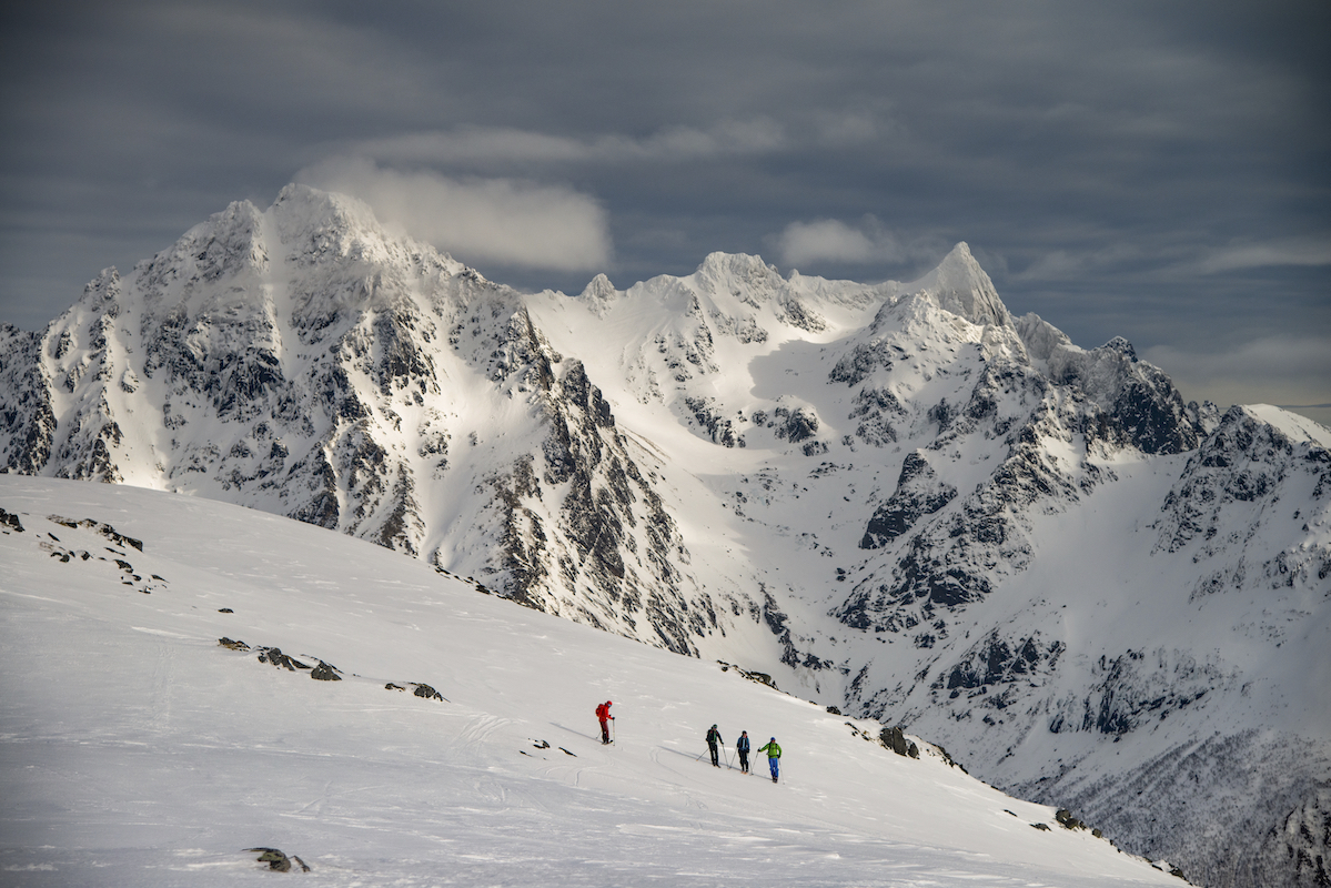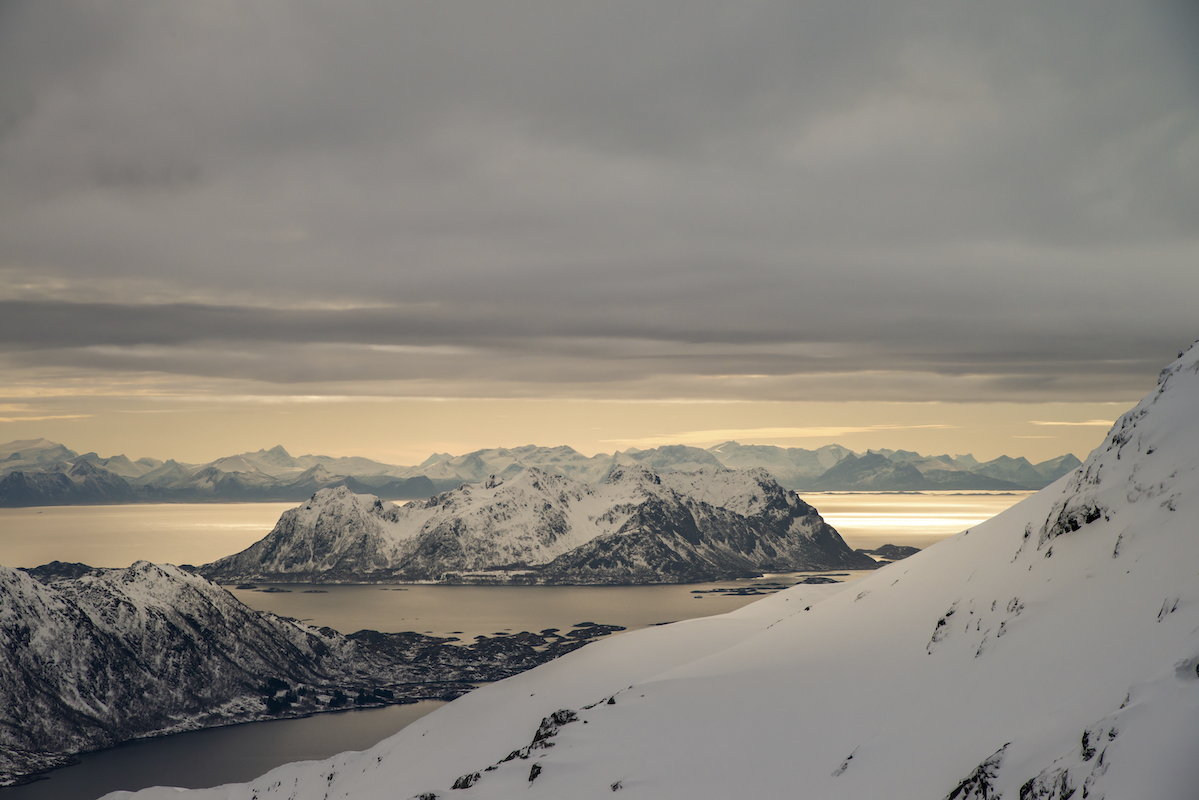 Skitouren auf den Inseln der Lofoten direkt am Atlantik ist ein ganz besonderes Erlebnis. Mit den Skiern in Richtung Meer zufahren und bis an den Strand abzufahren begeistert mich immer wieder. Das flache Licht am 68.Breitengrad und das sich schnell wechselnde Wetter zaubern wundervolle Stimmungen und unvergessliche Momente. Die Schneedecke war trotz hoher Temperaturen seht gut verfestigt und sehr gut zu fahren.