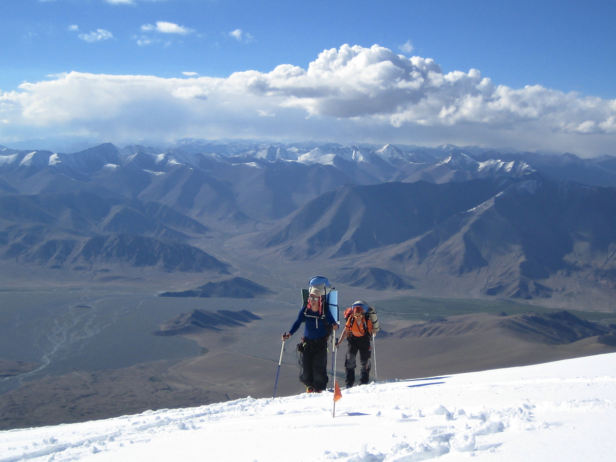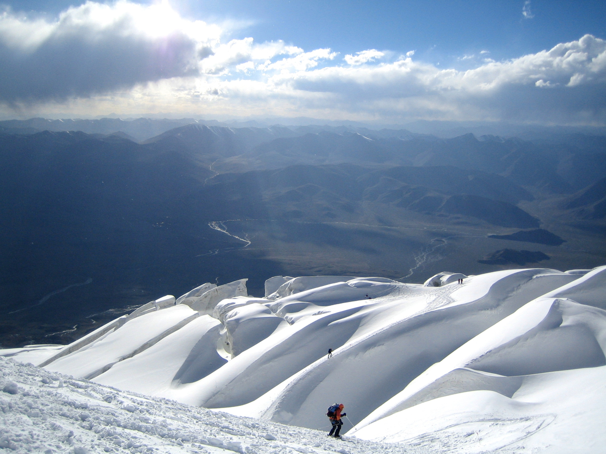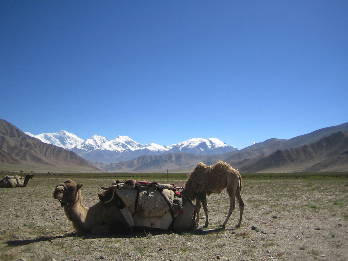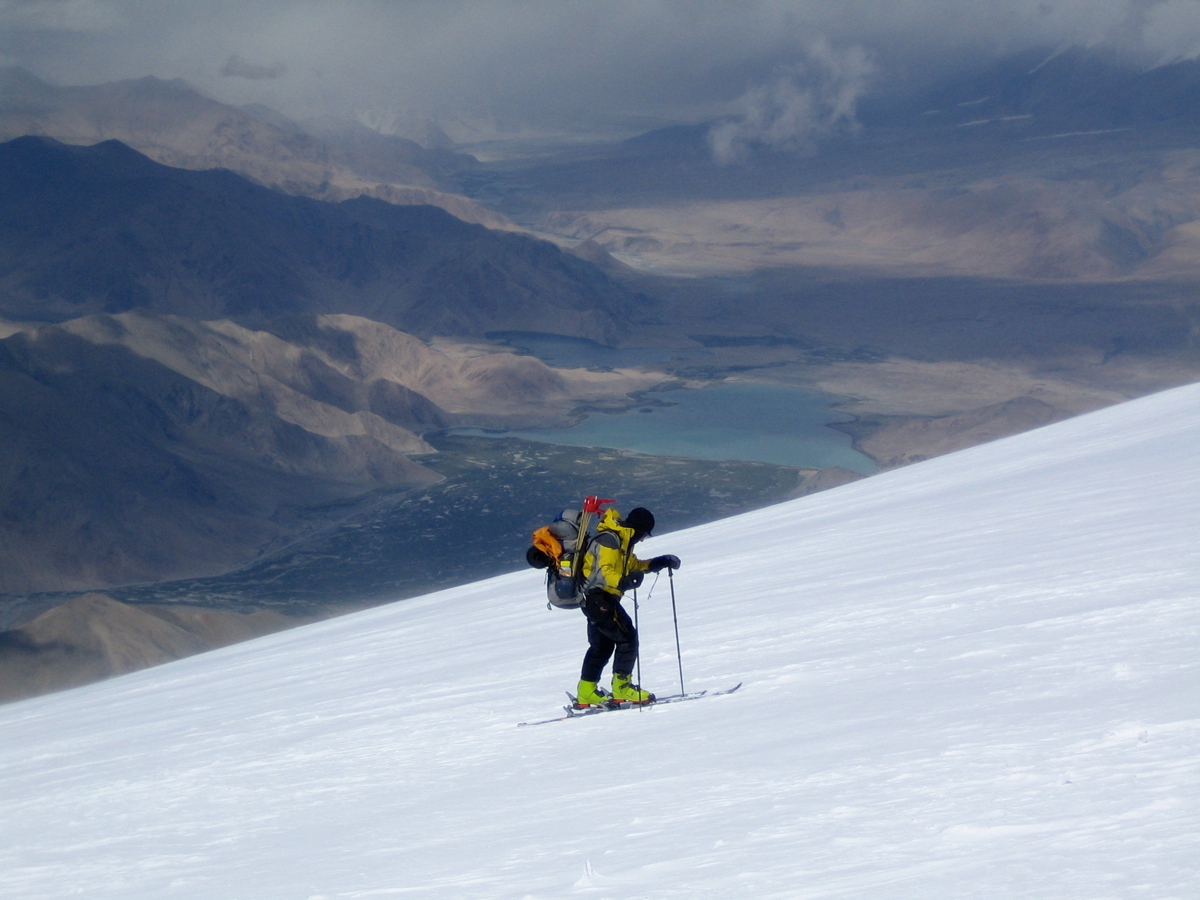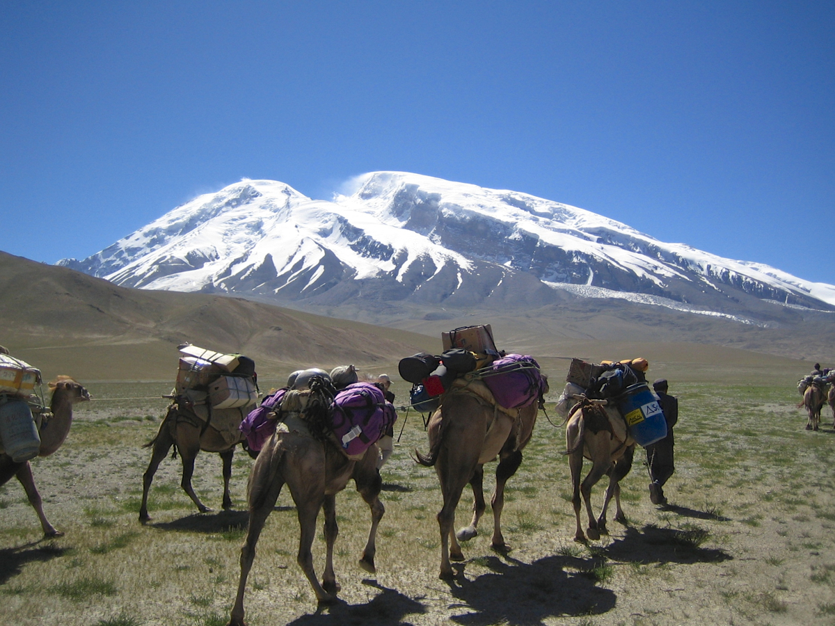 Von Pakistan sind wir auf dem Karakorum Highway am wilden Indus-Fluß entlang bis ins Hunza-Tal gefahren. Ich sah meinen ersten 8000er, den Nanga Parbat. Über den 4693m hohen Khunjerab-Pass reisten wir nach China ein. Eine völlig andere Kultur und eine völlig andere Landschaft erwartete uns. Eisbepanzerte Berge ragen mitten aus der Wüste bis auf 7000m in die Höhe. Den Gepäcktransport ins Basislager übernehmen Kamele. Das Wetterglück war auf unserer Seite, so dass wir überglücklich auf dem 7546m hohen Muztagh Ata standen und mit unseren Skiern vom Gipfel bis ins Basislager fuhren.