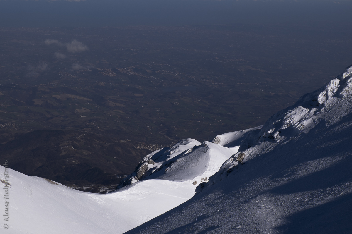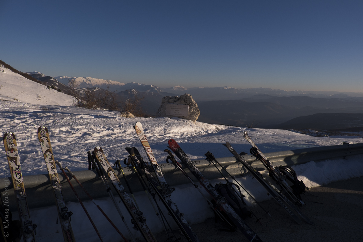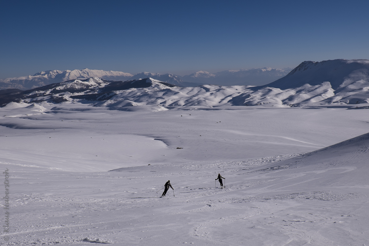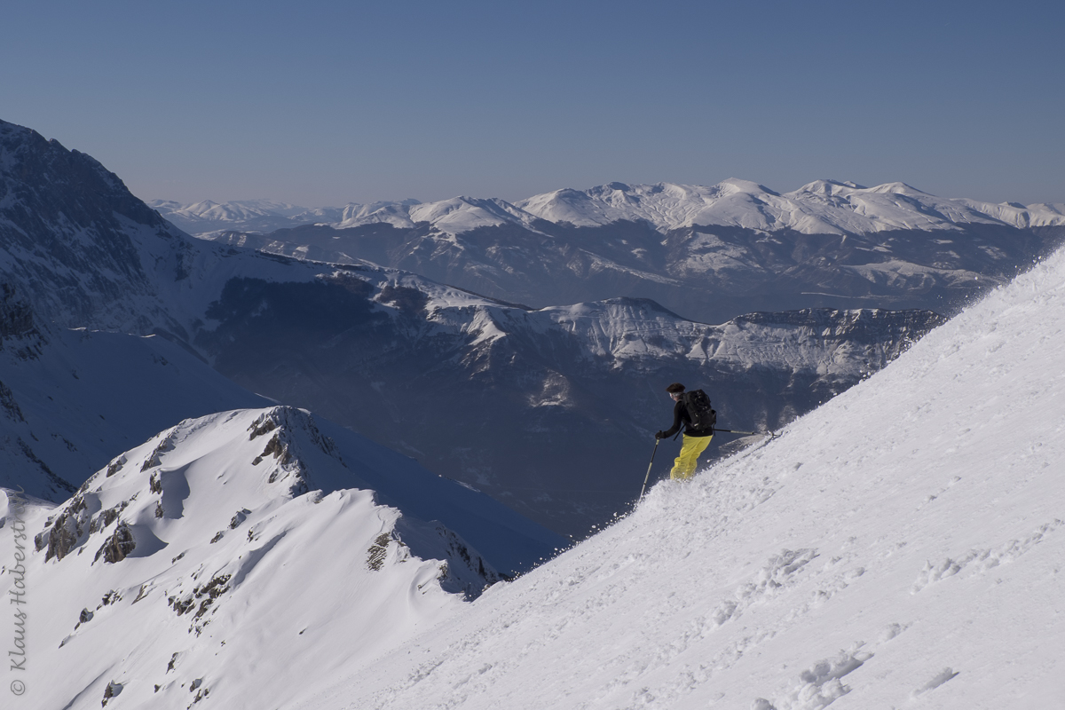 Ganz in der Nähe von Rom es schon eher ein exotisches Skitourengebiet. Aber da hat es richtige Berge bis auf knapp 3000m Höhe. Ein atemberaubendes Skigelände mit bestem Firn. Und nach der Skitour kann man Italien genießen. Bildhübsche Bergdörfer mit engen Gassen, Burgen und Festungen, guter Wein und die phantastische italienische Küche. Ich habe mich in diese Gegend verliebt und es wird mit Sicherheit nicht die letzte Skitour in den Abruzzen sein.