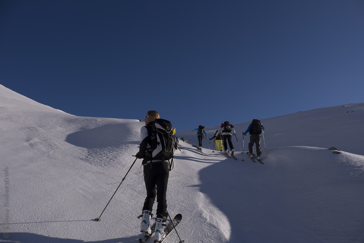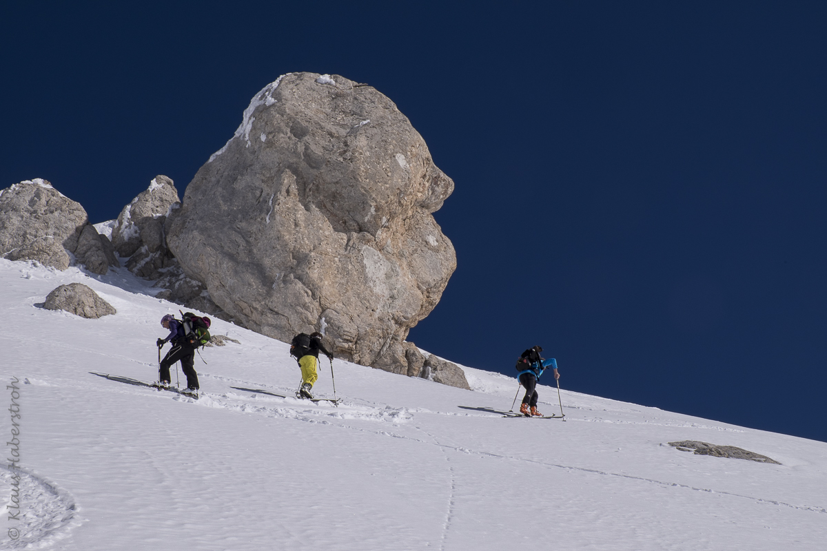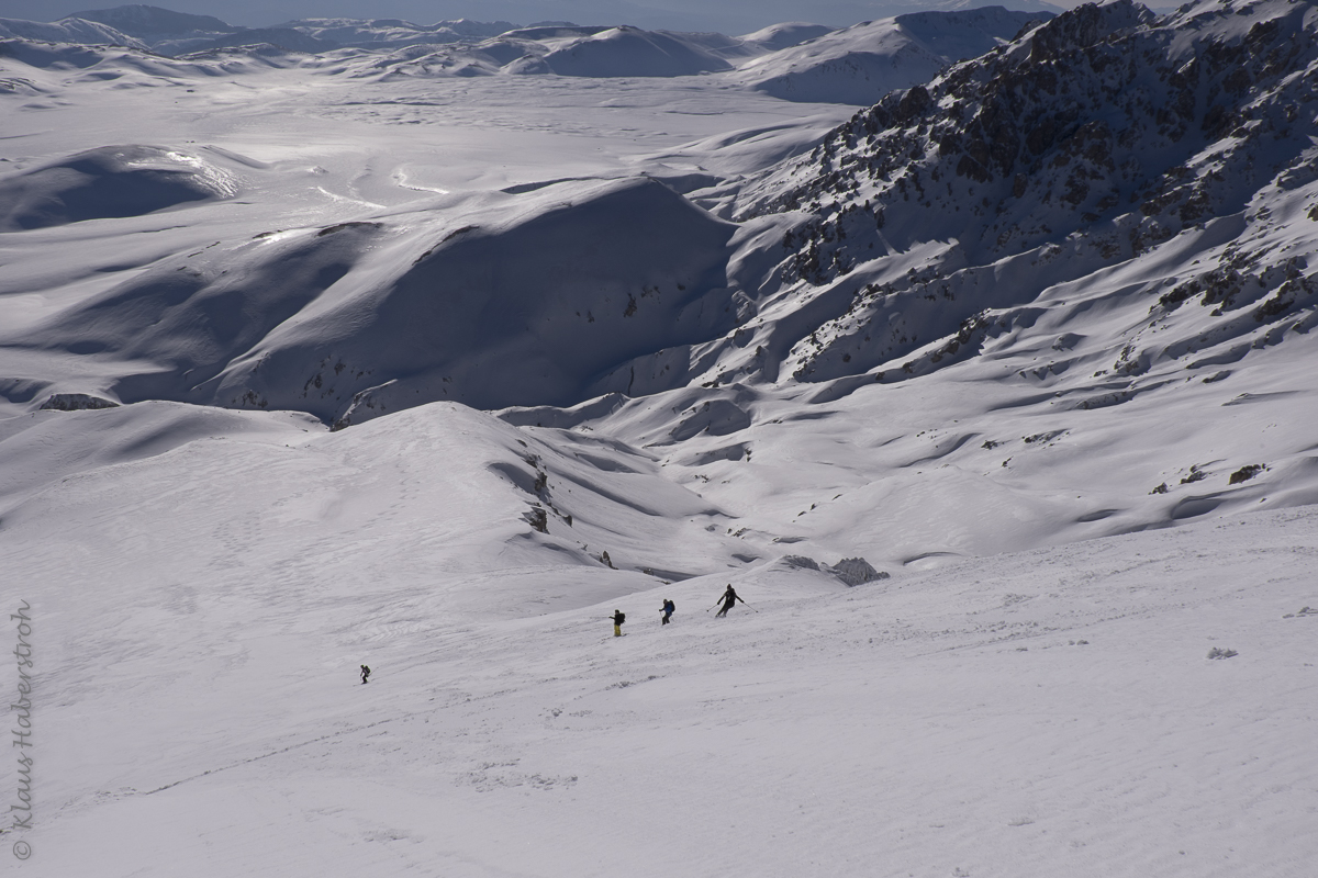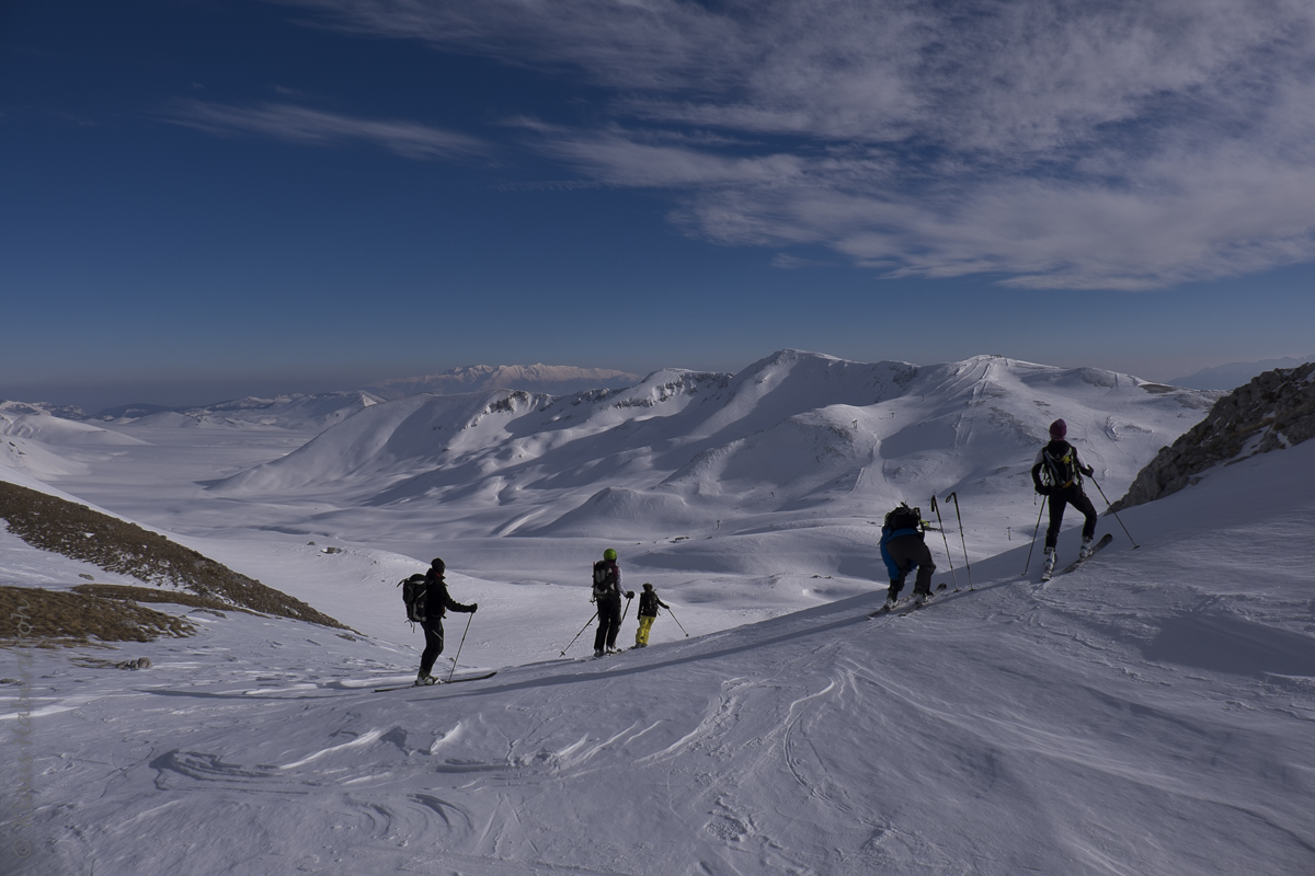 Ganz in der Nähe von Rom es schon eher ein exotisches Skitourengebiet. Aber da hat es richtige Berge bis auf knapp 3000m Höhe. Ein atemberaubendes Skigelände mit bestem Firn. Und nach der Skitour kann man Italien genießen. Bildhübsche Bergdörfer mit engen Gassen, Burgen und Festungen, guter Wein und die phantastische italienische Küche. Ich habe mich in diese Gegend verliebt und es wird mit Sicherheit nicht die letzte Skitour in den Abruzzen sein.